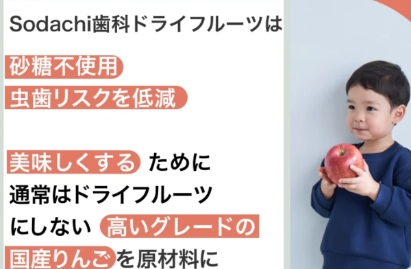 Sodachi歯科ドライフルーツりんごは、子供の歯の健康を考えた新しいおやつとして注目されています。小児歯科医師が開発したこの製品は、特にお子さんの成長段階に合わせた栄養価を備えており、安心して食べられることが特長です。